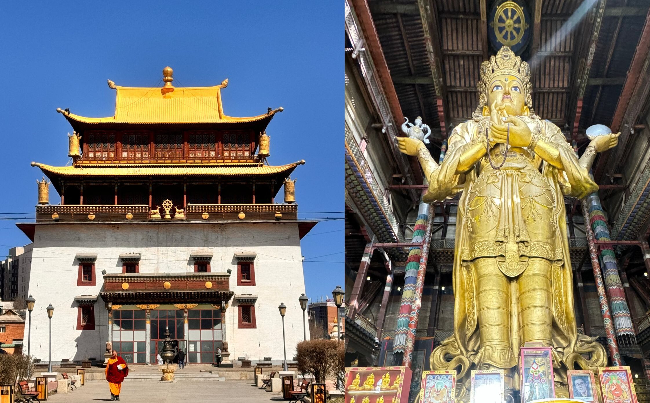 Arrival at Chinggis Khaan International Airport, followed by a warm welcome from your guide and driver. Then, visit the Gandan Monastery, the largest and most active Buddhist center in Mongolia, home to the impressive 26-meter statue of Migjid Janraisig, a symbol of compassion. Continue to Zaisan Memorial Hill, a Soviet-era monument offering sweeping panoramic views over Ulaanbaatar’s expanding skyline, the Tuul River, and distant mountain ranges. Free evening to rest or explore.